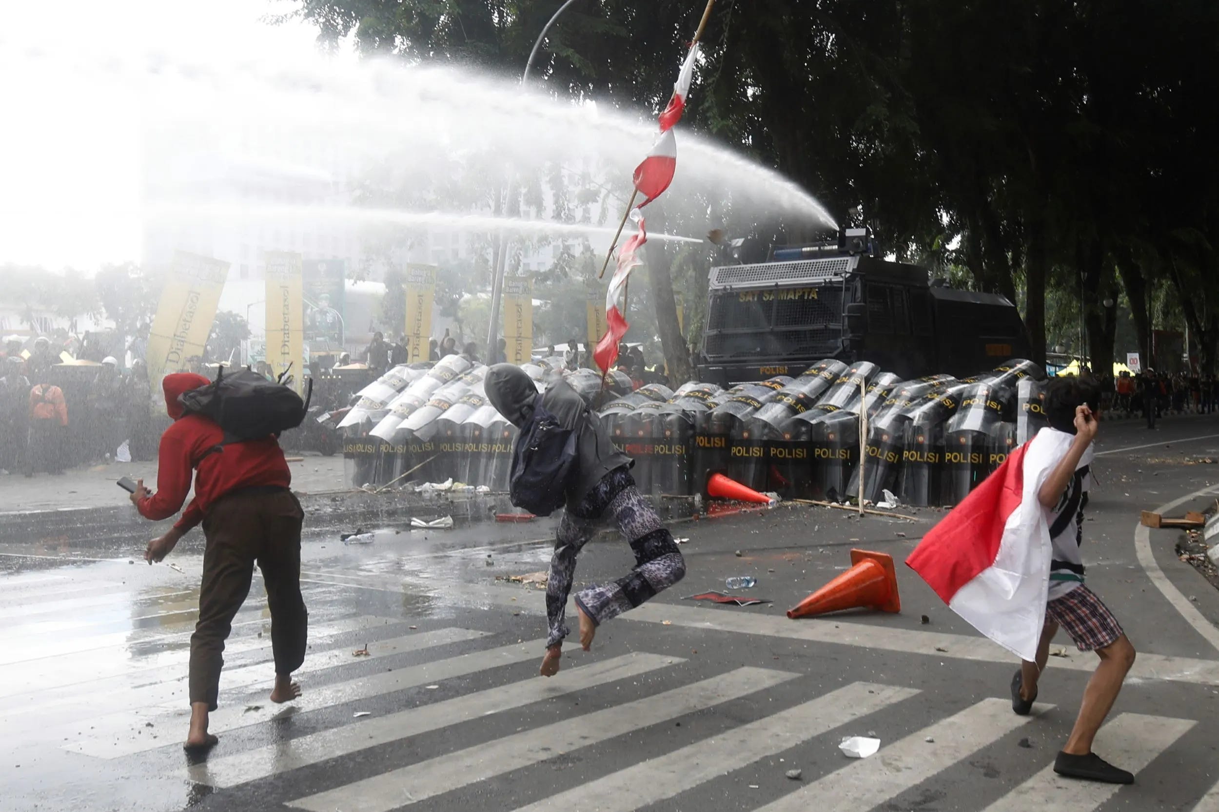 印尼近一星期以来,国内爆发激烈警民冲突,抗议群众完全无惧镇暴警察的棍棒盾牌或催泪瓦斯,在首都雅加达(Jakarta)多地、直接和警方发生冲撞,甚至直接放火焚烧警车泄愤。